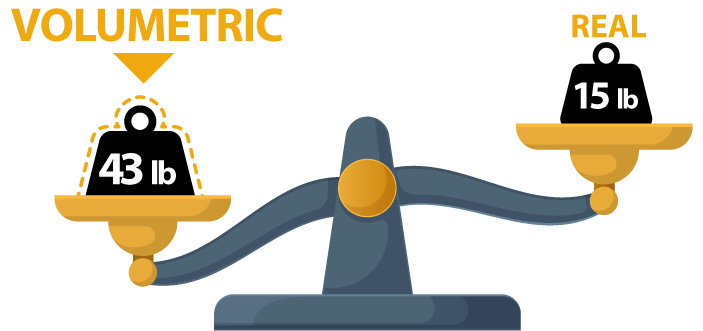 This is the space a package occupies. Sometimes a package is large but light, and it takes up a lot of space in the truck or airplane.